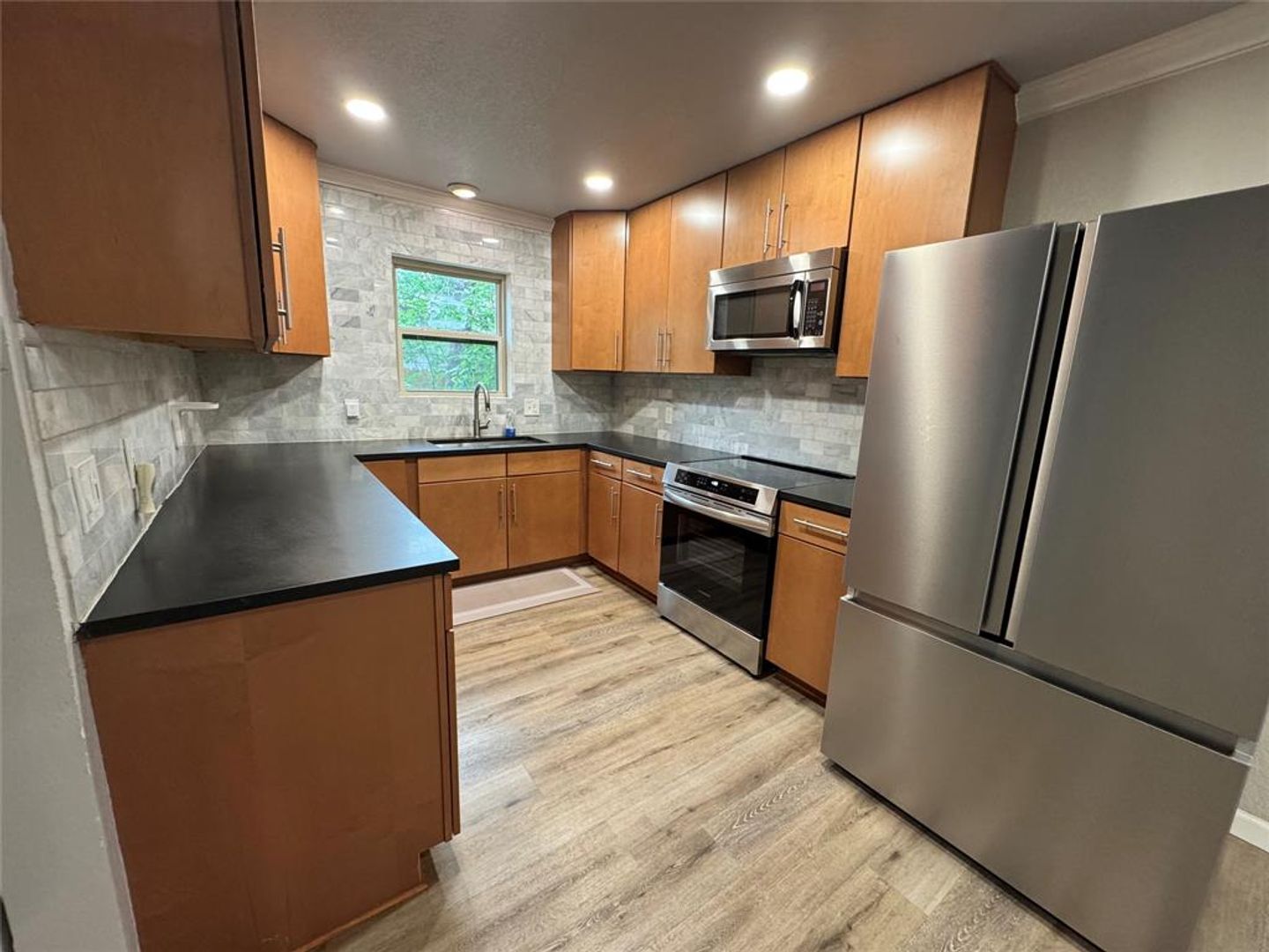 Stylish mid-century modern 3-bedroom, 2-bath home in desirable South Austin! This beautifully updated property features a sleek kitchen with granite countertops, modern cabinetry, and stainless-steel appliances, including a refrigerator, built-in microwave, and induction range. Enjoy added conveniences like recessed lighting, smart thermostat, and extra storage. Situated on a huge lot with mature trees, the backyard offers a spacious deck perfect for relaxing or entertaining. Durable laminate and tile flooring run throughout the home for easy maintenance. A nice-sized carport provides covered parking. Ideally located less than 20 minutes from downtown Austin and ABIA, with abundant shopping, dining, and entertainment nearby. Quick and easy access to IH-35 and Mopac makes commuting a breeze! Pet friendly!